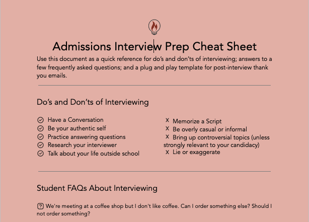 Hooray! Your Download of our Admissions Interview Prep Cheat Sheet is Ready!